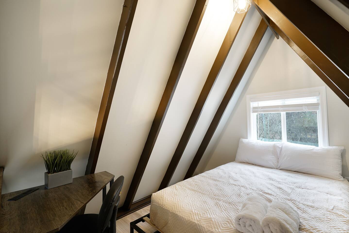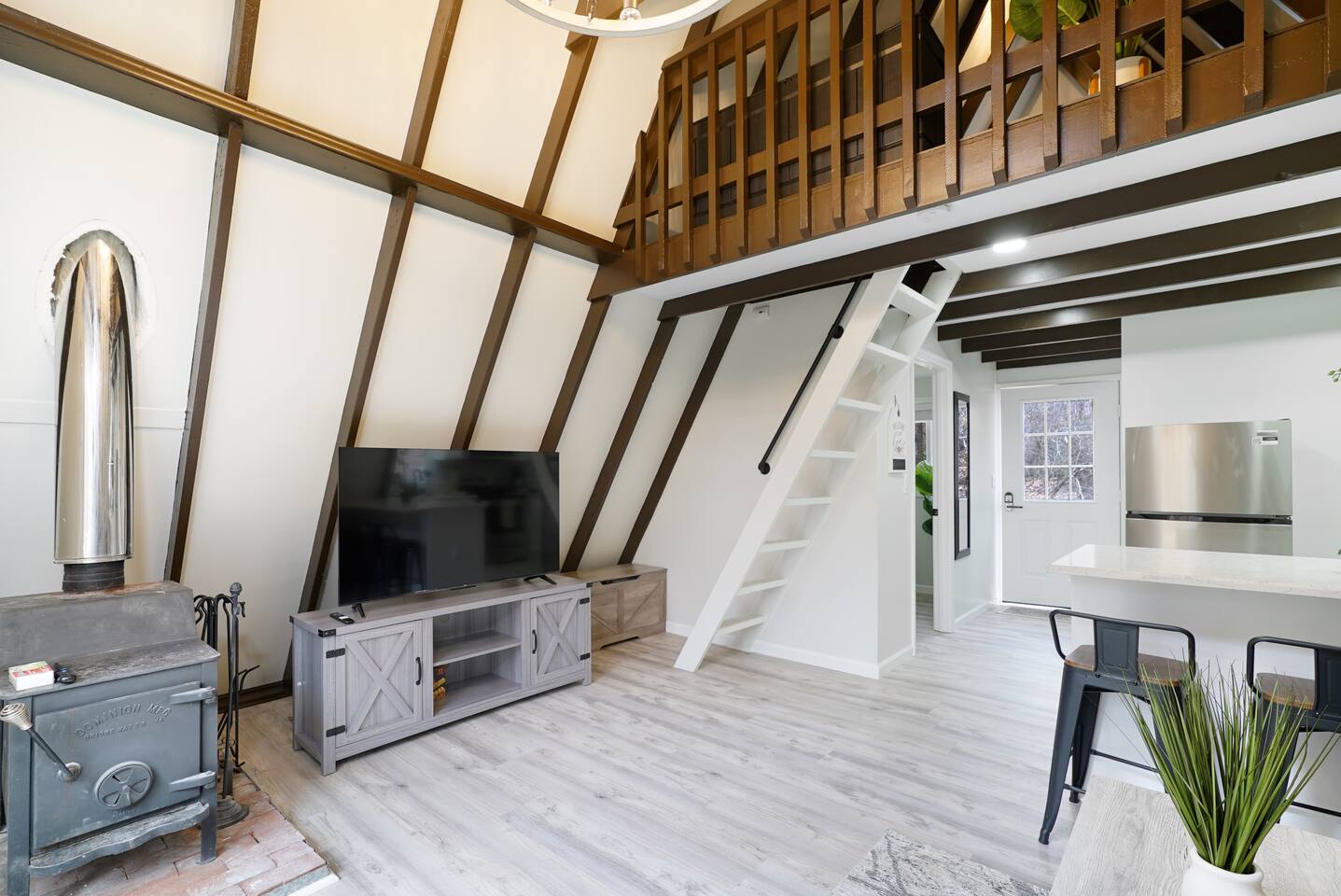 Please note there is no washer/dryer in the cabin. 4WD/AWD is required in the winter. Keep in mind this is an A-frame cabin so spaces will be cozy, particularly in the loft as there’s not a lot of headroom. Also it is surrounded by woods, so you can expect some bugs and critters outdoors and you may spot some wildlife if you’re lucky. We are dog friendly! We allow up to two furry friends to join you in your stay, but please be mindful to have them be clean when they enter the cabin and to pick up after them. There is a $65 pet fee.